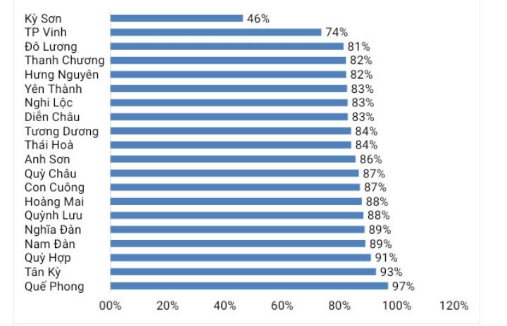 Tiêm vắc-xin phòng bại liệt cho trẻ tại CDC Nghệ An. Ảnh: Thành Chung Thông tin từ Trung tâm Kiểm soát bệnh tật tỉnh Nghệ An: Trong những năm qua, Nghệ An đã và đang nỗ lực thực hiện tốt công tác tiêm chủng phòng, chống bại liệt. Trong giai đoạn 2020-2023, do ảnh hưởng của dịch Covid-19, tỷ lệ tiêm vắc-xin OPV uống lần 1, 2, 3 cho trẻ dưới 1 tuổi và tỷ lệ tiêm vắc-xin IPV mũi 1 cho trẻ dưới 1 tuổi trong Chương trình Tiêm chủng mở rộng định kỳ chưa đạt chỉ tiêu đề ra (≥90%). Sự lũy tích các trường hợp chưa được tiêm chủng phòng bệnh qua các năm tạo ra khoảng trống miễn dịch cộng đồng. Sau khi dịch Covid-19 lắng xuống, từ cuối năm 2022, tỉnh đã đẩy mạnh chiến dịch uống OPV cho trẻ từ 1-5 tuổi để chủ động phòng, chống bệnh bại liệt với tỷ lệ tiêm chủng đạt 98,6%; triển khai chiến dịch tiêm IPV cho trẻ 2021-2022 chưa tiêm đủ mũi với tỷ lệ đạt 74,8%... Từ đó đến nay, công tác tiêm phòng vắc-xin bại liệt được đẩy mạnh; kết quả tiêm chủng chiến dịch phòng, chống bệnh bại liệt luôn đạt tỷ lệ cao; công tác chỉ đạo và giám sát liệt mềm cấp nghi bại liệt được triển khai thường xuyên, đạt chỉ tiêu đề ra. Tỷ lệ đủ mũi bại liệt cho trẻ dưới 1 tuổi trong 11 tháng đầu năm 2025. Ảnh: Thành Chung