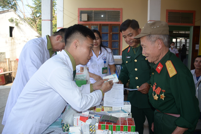 Thầy thuốc quân y tận tình hướng dẫn người dân cách sử dụng thuốc chữa bệnh.